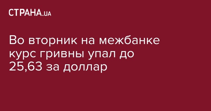 Во вторник на межбанке курс гривны упал до 25,63 за доллар