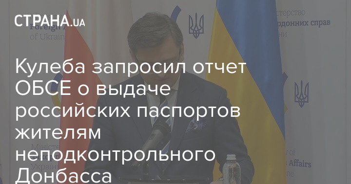 Министр иностранных дел Украины Дмитрий Кулеба обратился к ОБСЕ, новый председатель которой приехал с визитом в Киев, с запросом о тематическом докладе о паспортизации Россией жителей неподконтрольного Донбасса.