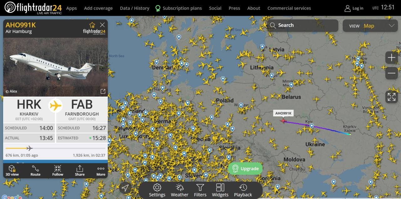 Бизнесмен Александр Ярославский, кортеж которого сбил человека под Харьковом, сейчас вылетел из Украины в Англию рейсом Харьков-Фарнборо.