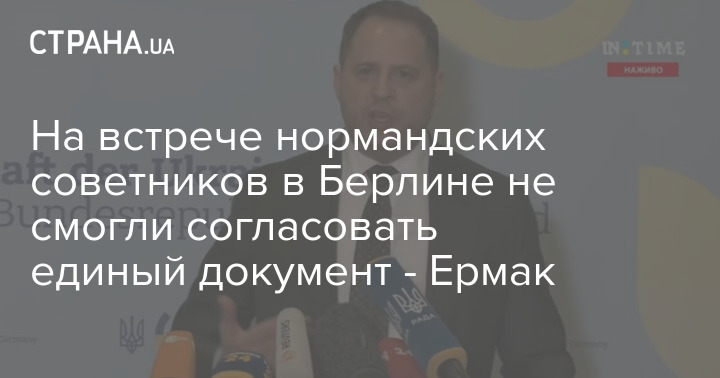 Глава Офиса президента Андрей Ермак вышел к журналистам после окончания встречи советников нормандской четверки. Он заявил, что в ходе девятичасовой дискуссии стороны так и не смогли прийти к выработке единого документа.