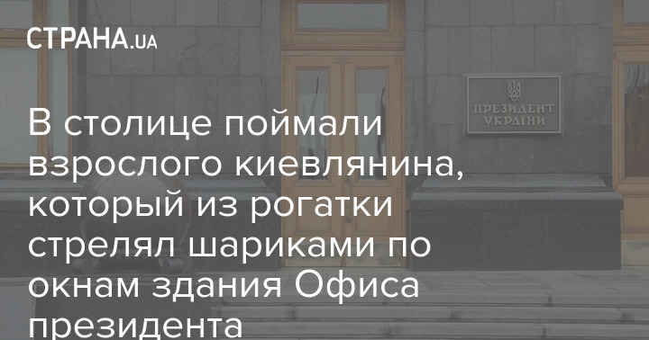 В Киеве правоохранители задержали мужчину, который стрелял из рогатки металлическими шариками по окнам здания Офиса Президента Украины.