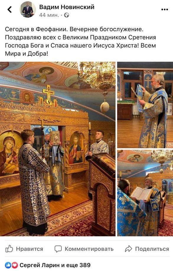 Так, нардеп Вадим Новинский опубликовал снимок, как он сегодня служил в церкви в Феофании (то есть он находится в Украине).