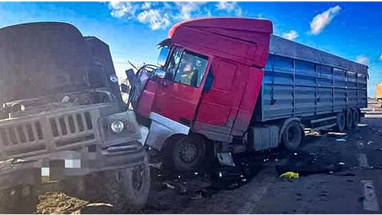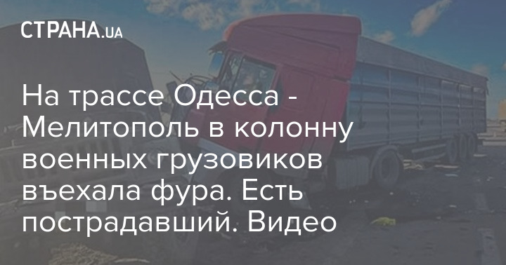 Фура въехала в колонну военных грузовиков. Скриншот