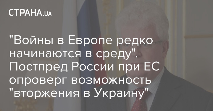 Постоянный представитель России при Евросоюзе Владимир Чижов заявил, что вопреки прогнозам Запада, Россия не планирует "вторжение в Украину" в среду. По его словам, эскалации ситуации не предвидится также на следующей неделе, через неделю, или в следующем месяце.