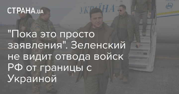 Президент Владимир Зеленский заявил, что Украина не наблюдает отвода российских войск от границ Украины, несмотря на заявление Минобороны РФ.