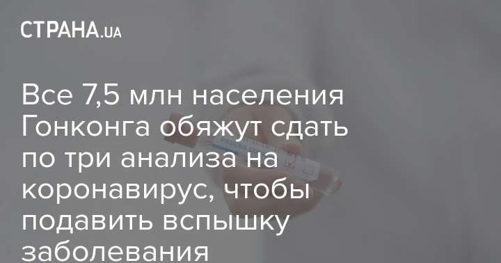 Программа пройдет при содействии специалистов из материкового Китая. В Гонконге проживают 7,5 миллионов человек. Все они в течение трех недель должны будут сдать по три анализа.