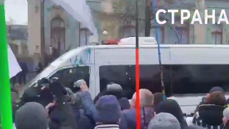 Протестующие бросают зеленку в полицию. Скриншот из видео