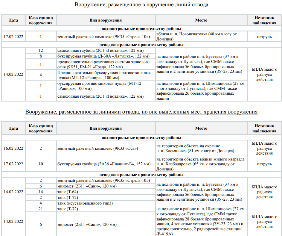 В ОБСЕ также заметили оружие, которое и ВСУ, и "республики" разворачивали у линии фронта.