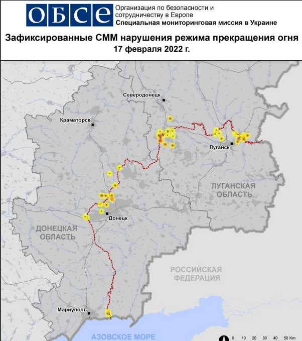 Понятно, что составить объективную картину по заявлениям сторон, обвиняющих друг друга, сложно. Более-менее понятной ситуация становится из отчета ОБСЕ, который затронул первый день обострения - 17 февраля, когда в Станице Луганской попал под обстрел детский сад.