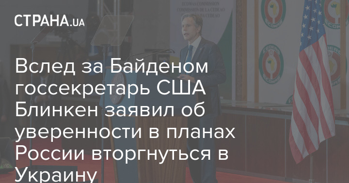 Государственный секретарь США Энтони Блинкен заявил, что Америка "вполне уверена" в своей информации о планах Российской Федерации по "вторжению" в Украину.