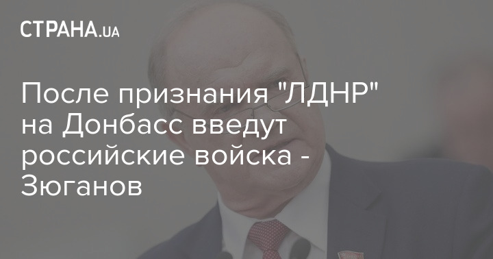 Лидер Коммунистической партии Российской Федерации (КПРФ) Геннадий Зюганов заявил, что после признания "ЛДНР" Российской Федерацией на Донбасс будут введены российские войска.