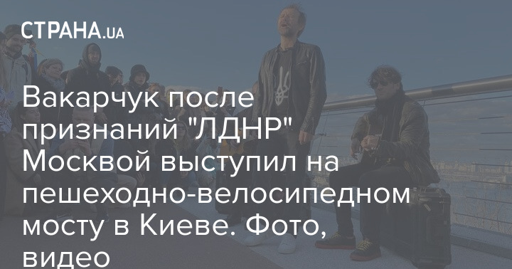 Лидер украинской группы "Океан Эльзы",  судья проекта "Голос страны-12", Святослав Вакарчук в Киеве на пешеходно-велосипедном мосту днем, во вторник, 22 февраля, дал концерт под открытым небом. Он спел несколько песен, таким образом отреагировав на признание Москвой "ДНР" и "ЛНР".