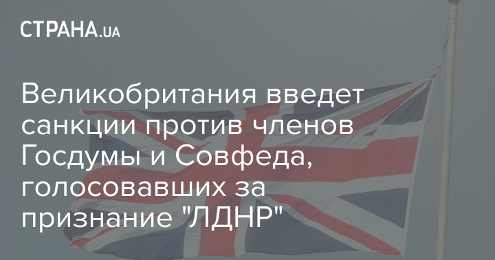 "Великобритания наложит санкции на тех членов российской Госдумы и Совета Федерации, которые проголосовали за признание независимости Донецка и Луганска, что является грубым нарушением территориального суверенитета Украины", — говорится в сообщении.