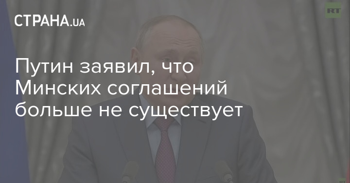 В вечернем выступлении 22 февраля перед журналистами президент Владимир Путин заявил, что Минских соглашений больше не существует. По его мнению, они де-факто были аннулированы Украиной задолго до признания Москвой "ЛДНР".