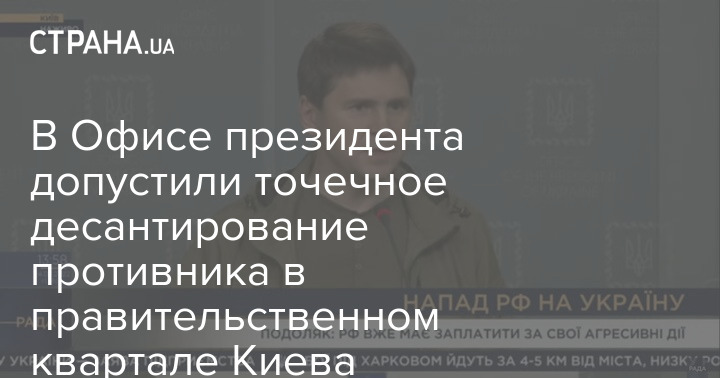 Советник главы Офиса президента Подоляк говорит, что возможно десантирование противника прямо в правительственном квартале Киева.