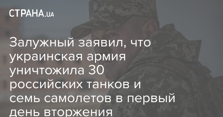 Главнокомандующий ВСУ Валерий Залужный подвел итоги первых суток российского вторжения. По его словам, РФ 24 февраля потеряла более 30 танков, 130 боевых бронированных машин, семь самолетов и шесть вертолетов.