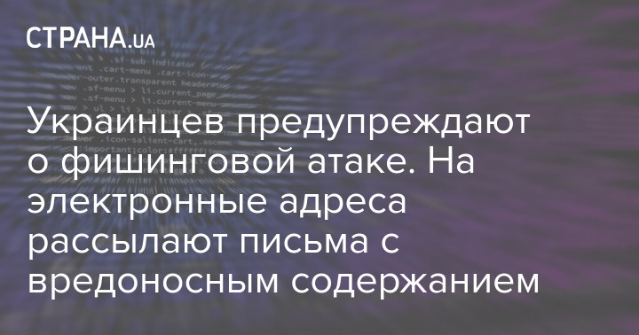 Украинцев предупреждают о фишинговой атаке. На электронные адреса рассылают письма с вредоносным содержанием
