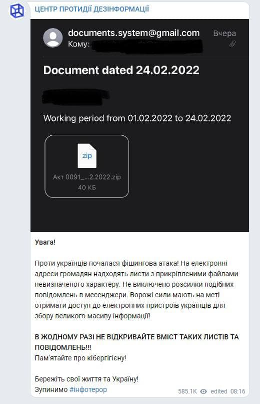 Украинцев предупреждают о начавшейся фишинговой атаке. На электронные адреса граждан поступают письма с прикрепленными файлами неопределенного характера.