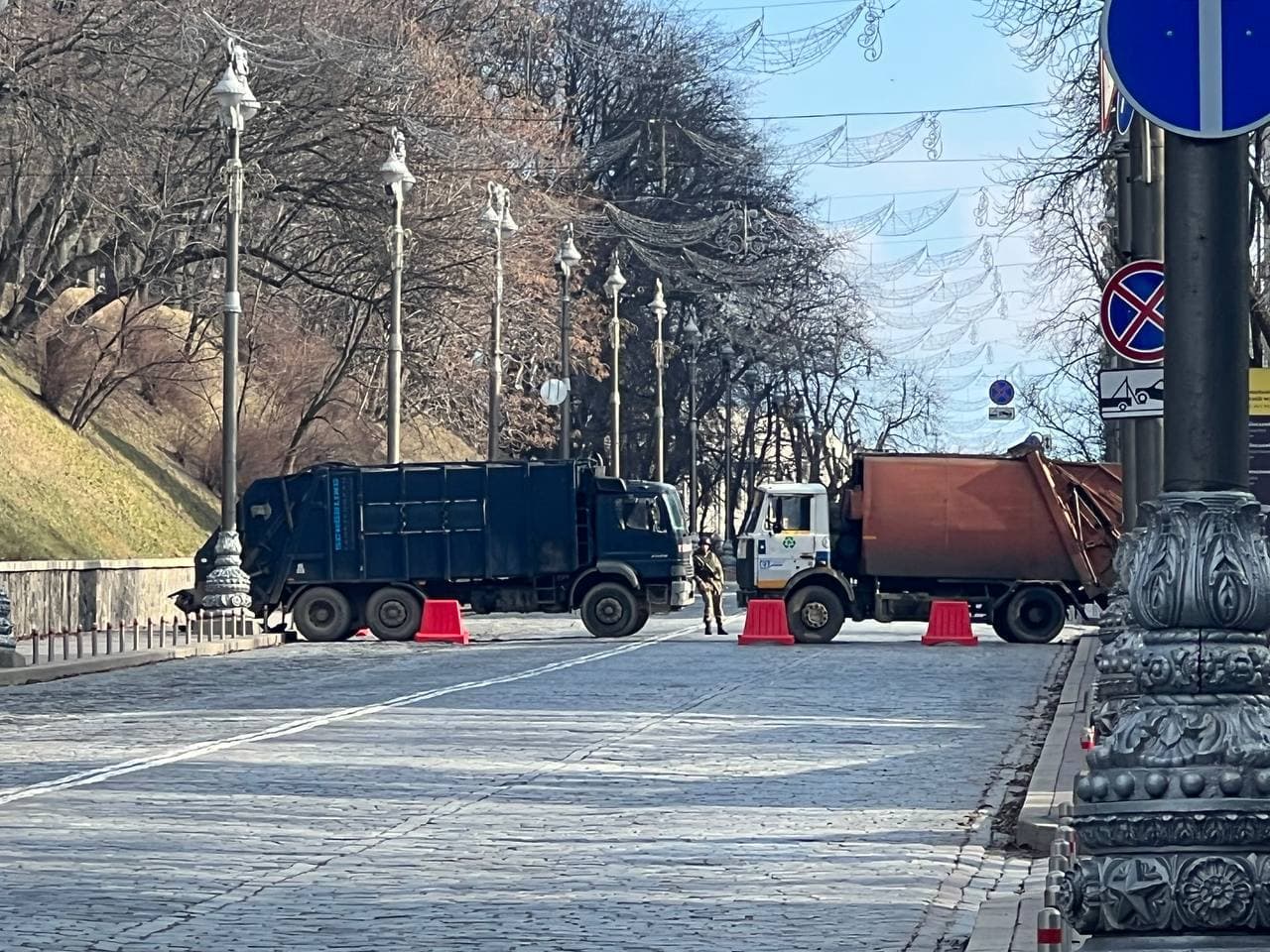 Правительственный квартал уже перекрыла спецтехника.