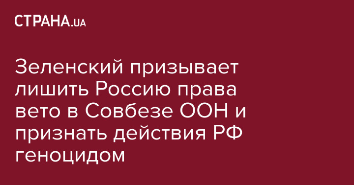 Зеленский призывает лишить Россию права вето в Совбезе ООН и признать действия РФ геноцидом