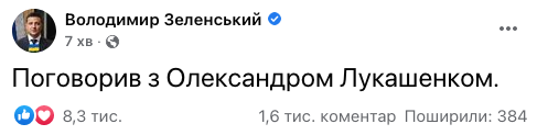 "Поговорил с Александром Лукашенко", - коротко отметил он.