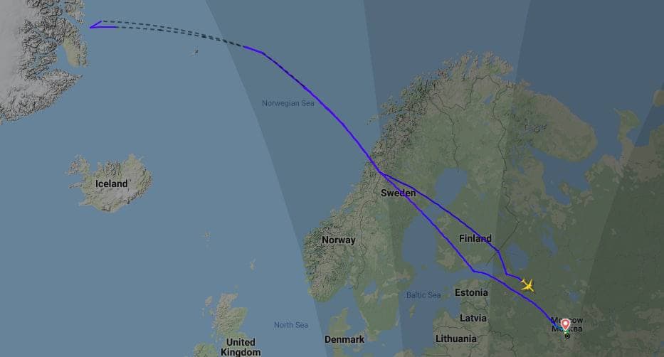 22:09 Рейс "Аэрофлота" Москва - Нью-Йорк на подлете к Америке развернулся и полетел обратно.
