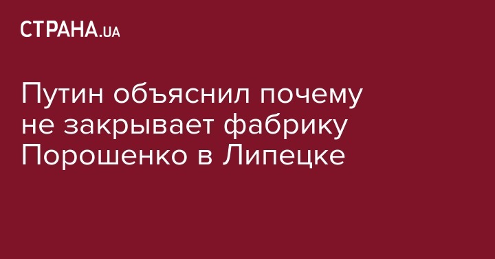 "То же самое касается и наших иностранных инвесторов, в том числе и украинских инвесторов. Петр Алексеевич Порошенко является одним из таких инвесторов, имея в виду, что он является собственником достаточно крупного предприятия в Липецкой области - фабрики "Рошен", - подчеркнул Путин.