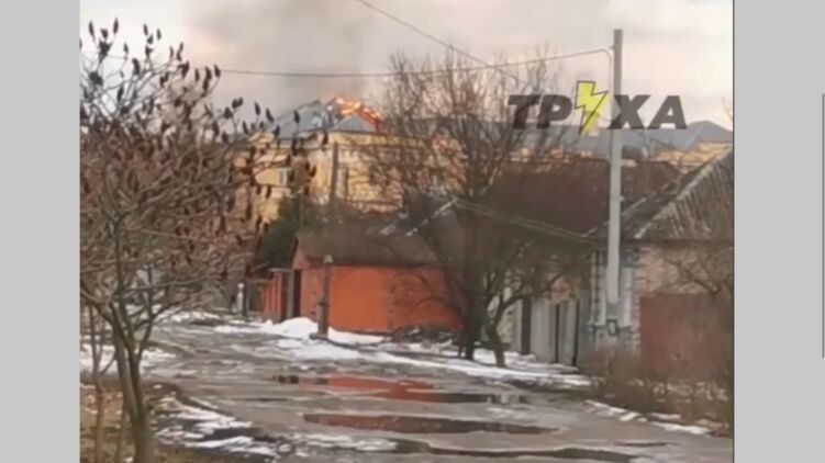 Горит школа в Харькове, куда вошли российские военные. Видео пожара