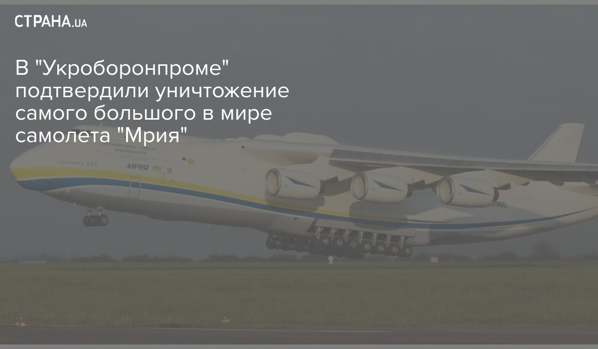 "Российские оккупанты уничтожили флагман украинской авиации – легендарный Ан-225 "Мрия". Это произошло на аэродроме "Антонов" в Гостомеле под Киевом, где находился самолет. Его восстановление будет стоить более 3 млрд долларов и потребует длительного времени. Украина приложит все усилия, чтобы эти работы оплатило государство-агрессор", - сказано в записи.