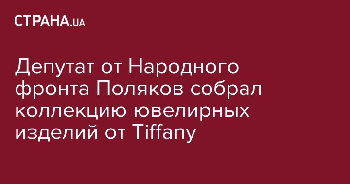 Депутат Верховной Рады от "Народного Фронта" Максим Поляков задекларировал серьги и кольцо Tiffany без указания стоимости изделий, а также часы Rolex. Об этом свидетельствуют данные Единого государственного реестра деклараций лиц.