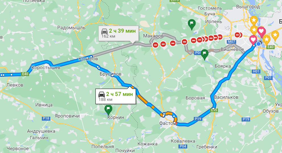 Закрыт проезд и на Чернигов: судя по картам - за 60 километров от города, но по факту лучше вообще не рисковать и не ехать на то направление, откуда РФ развивает наступление. Наверняка еще раньше там начнутся блок-посты, на которых вас могут просто развернуть.