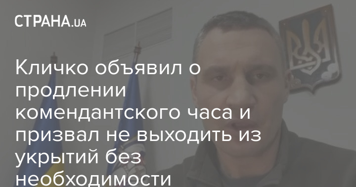 Также он заявил, что в Киеве действует комендантский час с 20:00 до 08:00. Таким образом, его действие продлилось на один час. Еще сегодня комендантский час был до 07:00.