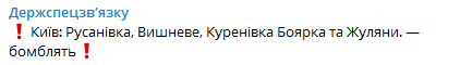 Также очевидцы сообщают о бомбовых ударах в районе площади Шевченко, бывшего магазина "Пингвин" на Куреневке и в районе Пущи Водицы.