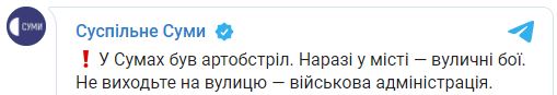 08:25 Утром в Сумах был артобстрел. Сейчас уличные бои.