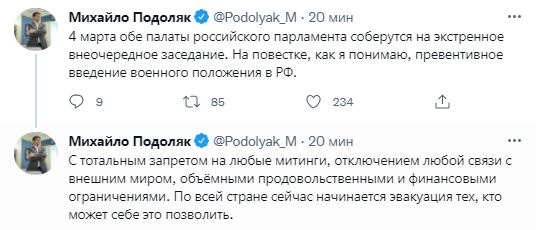 21:35 В Кривом Роге завтра будет эвакуация десятков тысяч людей. Военная администрация сказала перевезти людей подальше от военных городков и военных частей.