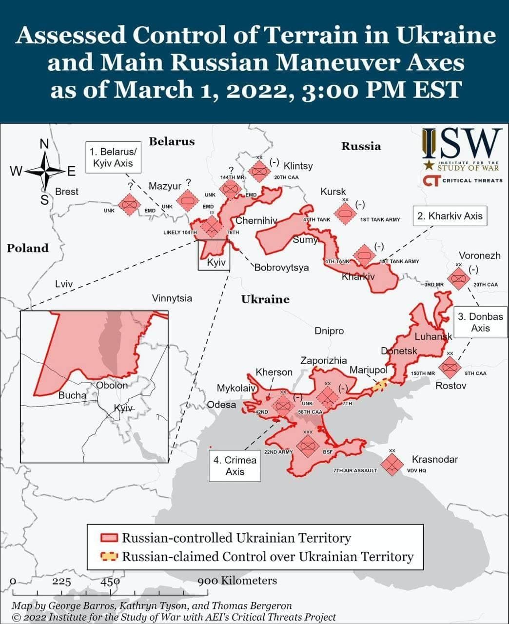 Ночью стало известно, что российские войска заняли центр Херсона, а утром появились к юго-востоку от Харькова.
