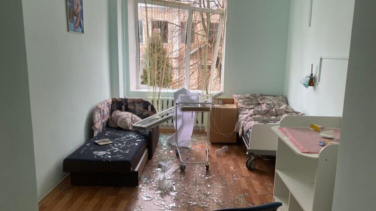 В областном перинатальном центре повыбивало окна. Фото: facebook.com/MNS.GOV.UA