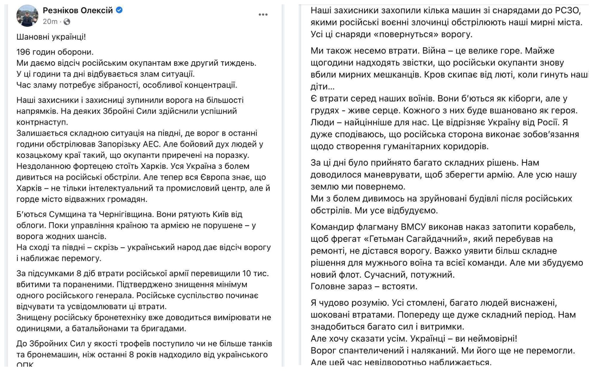 20:30 Арестович записал интересное видео.