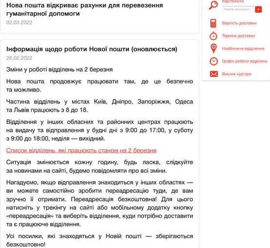 Также Новая почта открывает счета для перевозки гуманитарной помощи. А посылки, которые находятся в отделениях, сохраняются бесплатно.