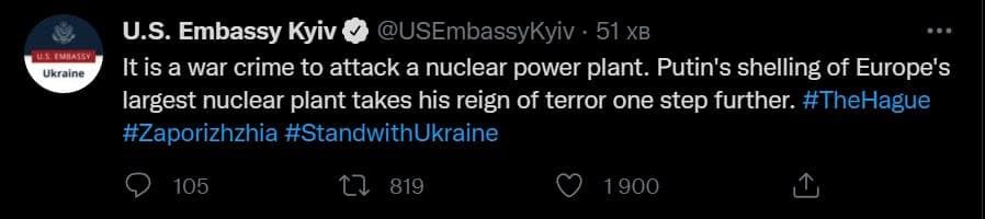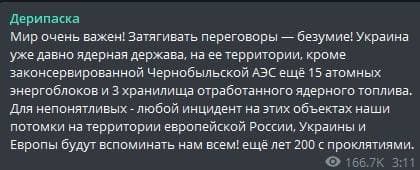 Российские оккупанты испугались позорного поражения и начали совершать преступления против человечности. Они обстреливают больницы, убивают женщин и детей. Это уже не армия – это обычные трусы и террористы.