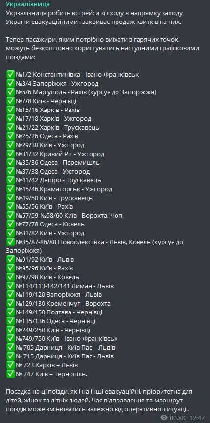 18:35 Из Запорожья сегодня отменили эвакуационные поезда.