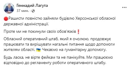 10:08 Обращение Терехова к харьковчанам. Говорит, что Харьков обязательно выстоит. Начали получать гуманитарную и медицинскую помощь, волонтеры развозят продукты питания, а все коммунальные платежи тем, кто сейчас готовит людям еду для харьковчан, будут аннулированы.