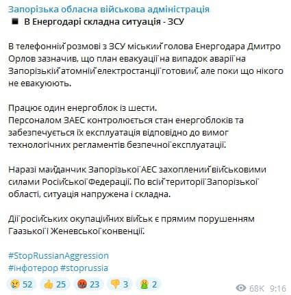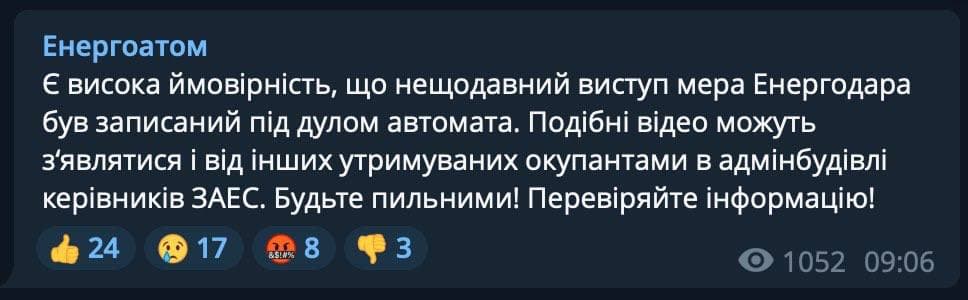 09:42 Российские военные просили руководство Энергодара ненадолго впустить их в город, чтобы сделать фото на фоне Запорожской атомной электростанции для отчета