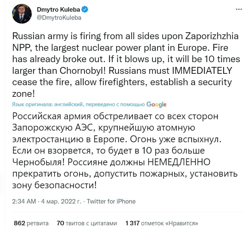 "Сегодня время вспомнить еще кое-что. Гарантии и обещания безопасности, решимость альянсов, ценности, которые мне кажется для кого-то умерли. Сегодня состоялся саммит НАТО. Слабый саммит, растерянный, который оказал, что не все считают борьбу за свободу в Европе целью номер один. Все разведки стран НАТО прекрасно знают планы врага. Они также подтвердили, что Россия планирует продолжать наступление.
