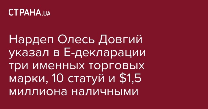 Нардеп Олесь Довгий указал в Е-декларации три именных торговых марки, 10 статуй и $1,5 миллиона наличными
