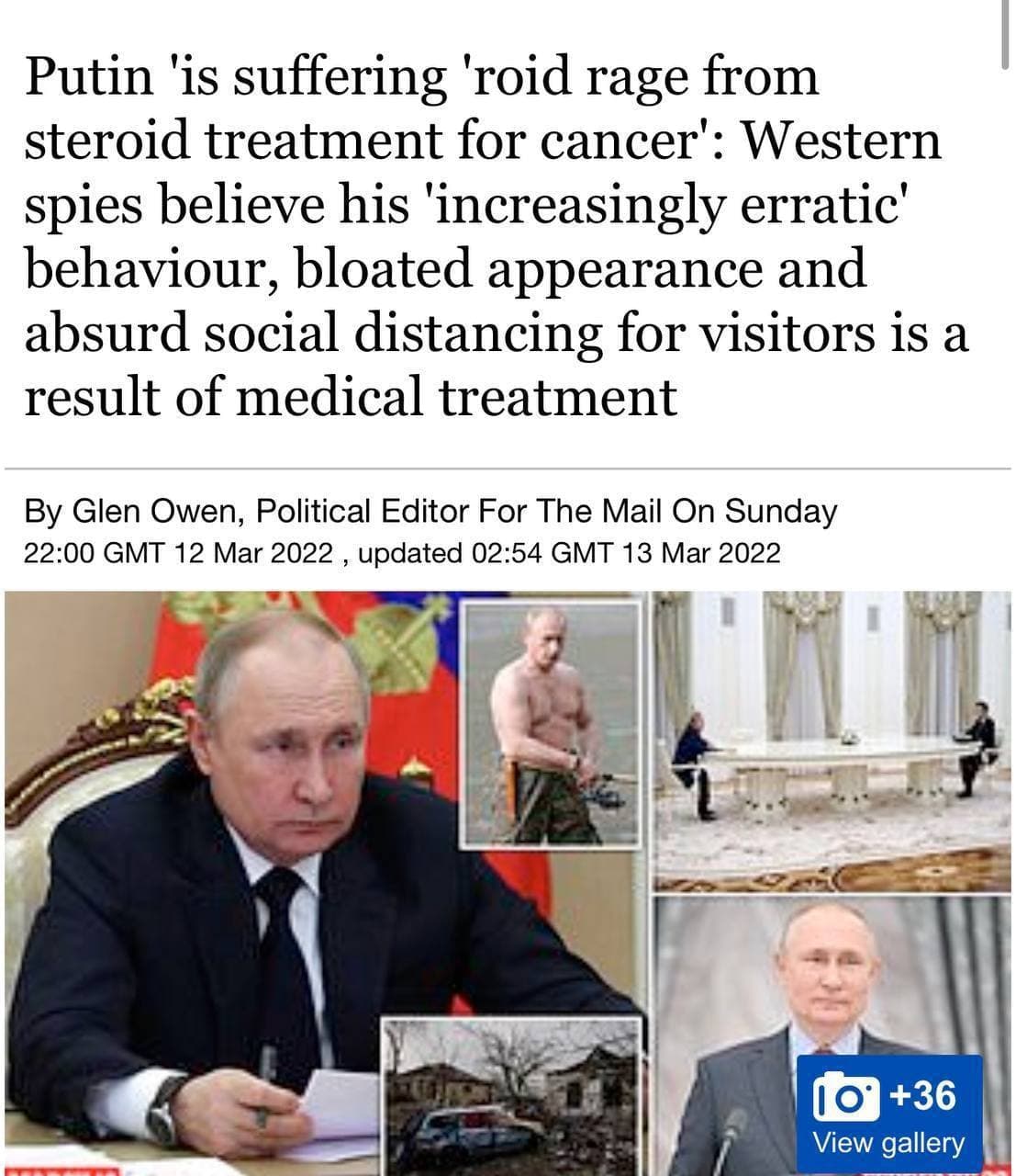 17.55 Путин "страдает от стероидной ярости, вызванной раком", — утверждает Daily Mail ссылаясь на данные американской разведки.