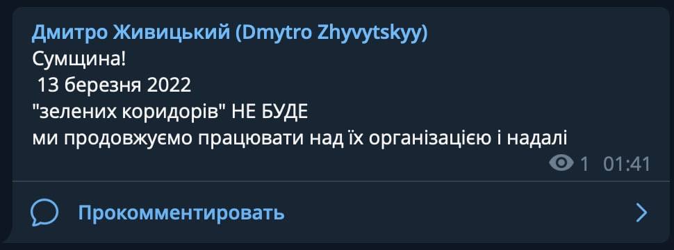 02:06 В воскресенье эвакуации и зелёных коридоров в Сумской области не ожидается, сообщает губернатор области.