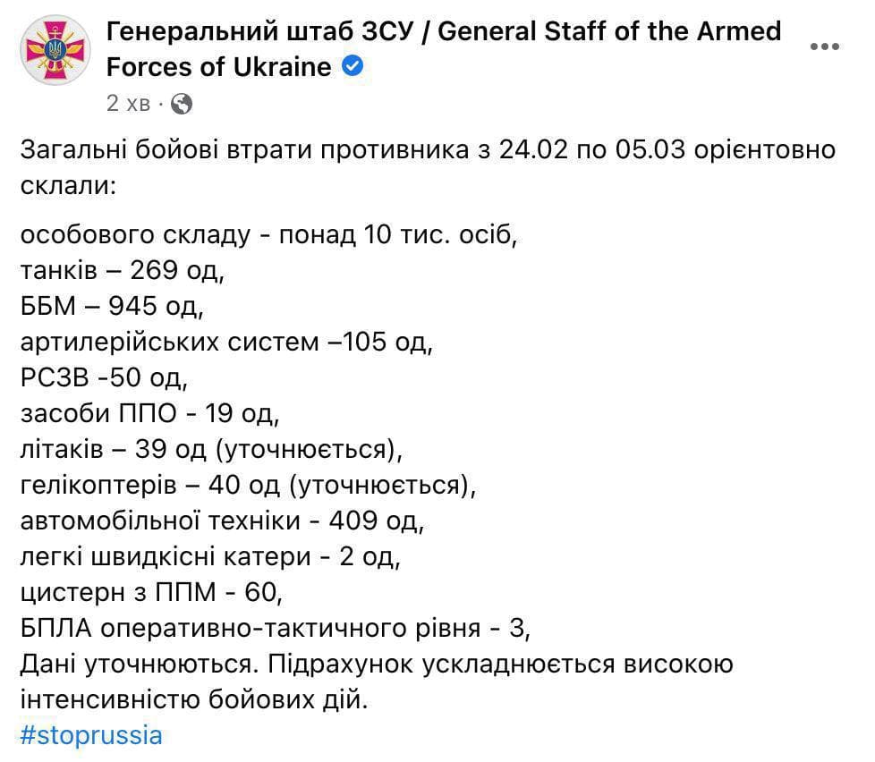 09:39 Сводка о потерях противника от Генштаба ВСУ.