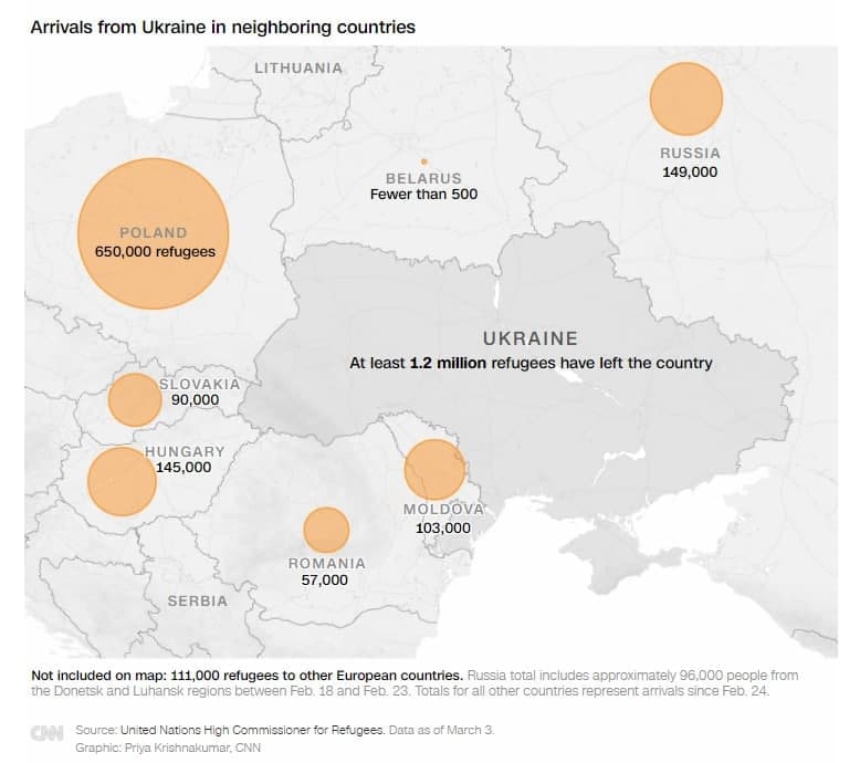 07:28 Более 1,2 миллиона беженцев покинули Украину, по данным ООН.