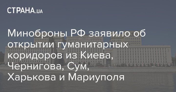 Миноброны РФ заявило об открытии гуманитарных коридоров из Киева, Чернигова, Сум, Харькова и Мариуполя
